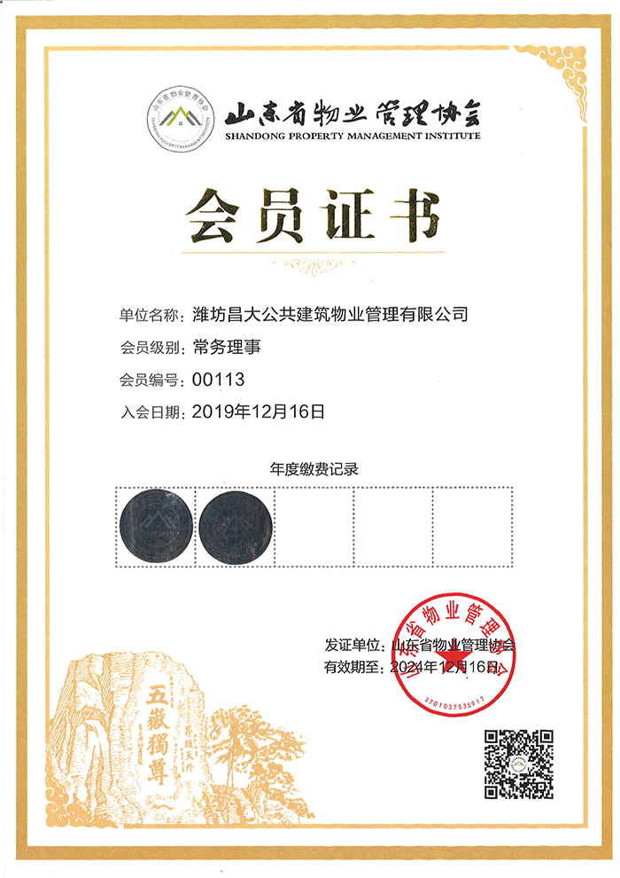 2023年度山東省物業(yè)管理協(xié)會(huì)優(yōu)秀會(huì)員單位證書
