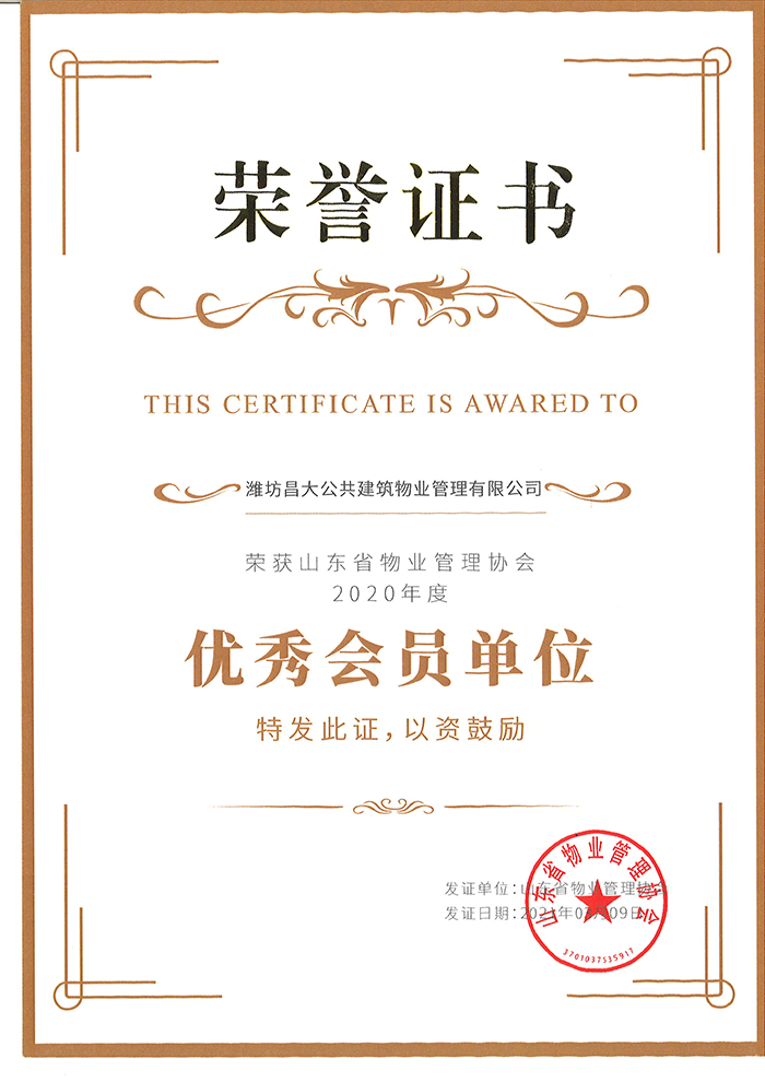 山東省物業(yè)管理協(xié)會(huì)優(yōu)秀會(huì)員單位